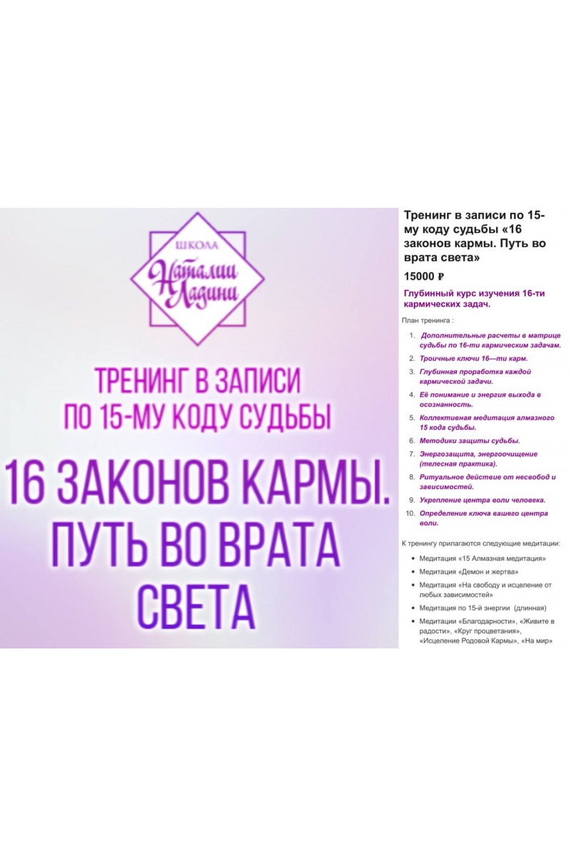 Глубинный курс изучения 16-ти кармических задач.План тренинга :