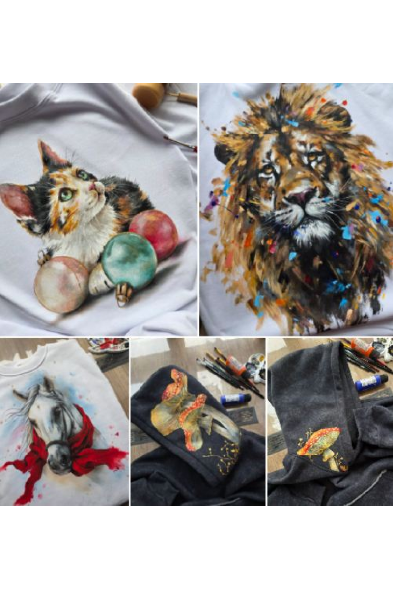 Акварельная лошадь, мухоморы, котенок, лев. Даша Лисенкова