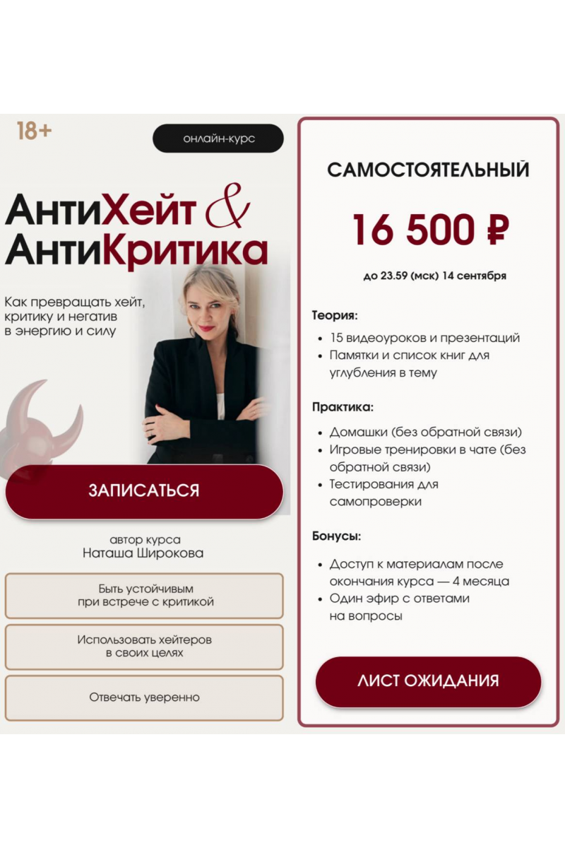 — Уверена, после курса вы будете искать хейтеров по всему интернету и радоваться им как родным.