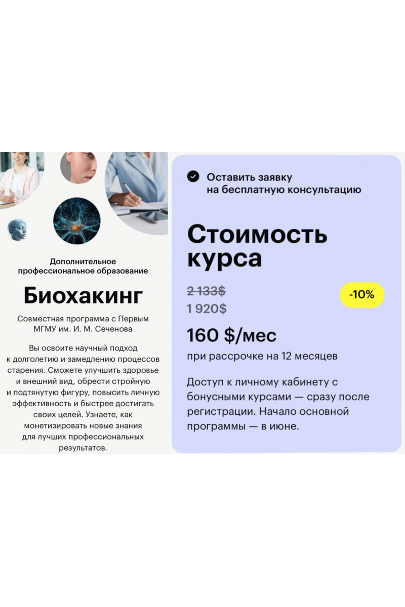 Освойте новую область и практикуйте биохакинг для себя или своих клиентов.
