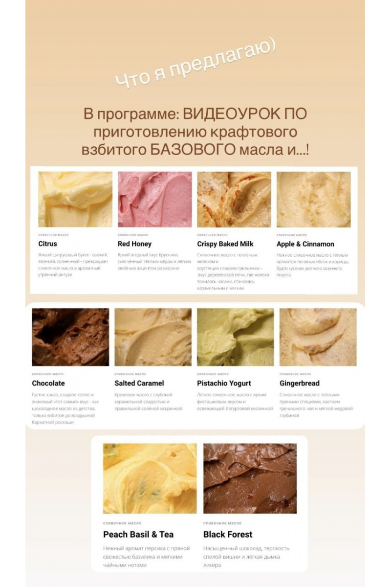 - пошаговые технологические карты эмульсий, которые придадут базовому маслу уникальный вкус и текстуру