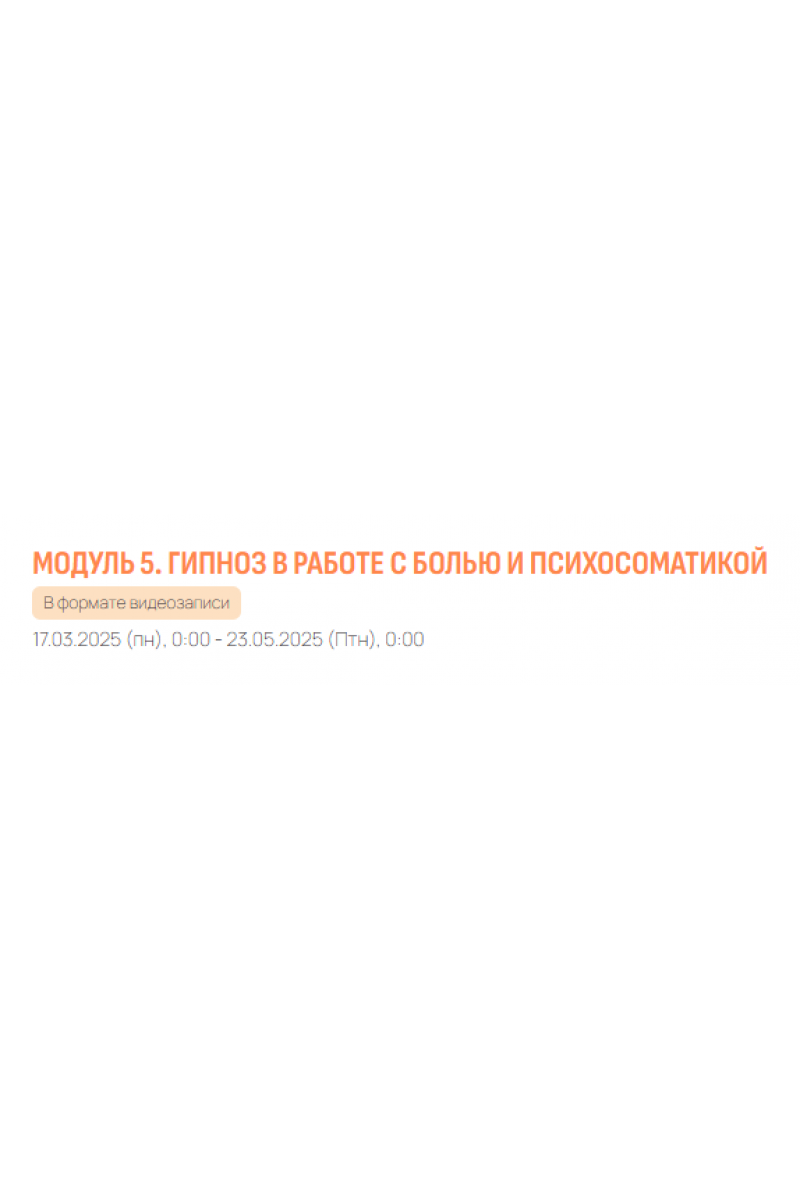 Модуль 5. Гипноз в работе с болью и психосоматикой: