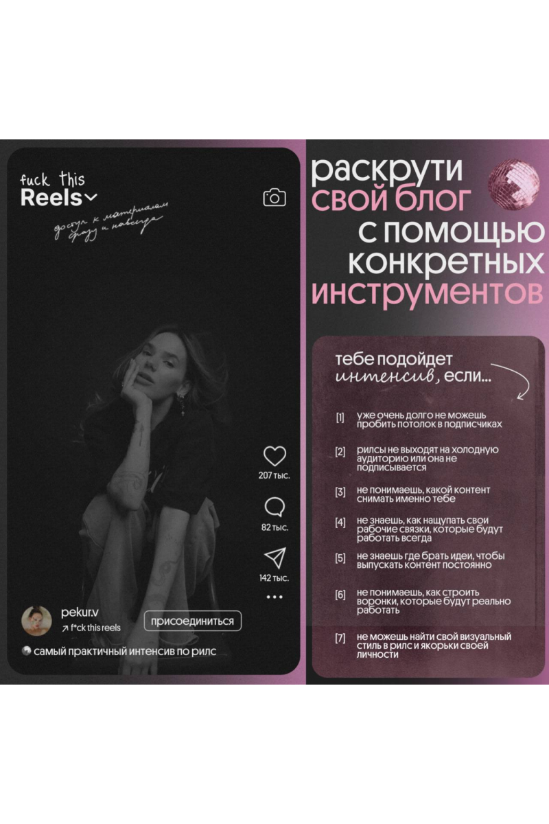 этот продукт — интенсивная и эффективная практика моих подходов в reels.