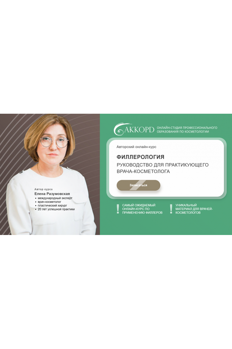 Авторский курс легендарной Е. А. Разумовской по применению филлеров — инновационная обучающая программа, не имеющая аналогов на рынке русскоговорящих стран.