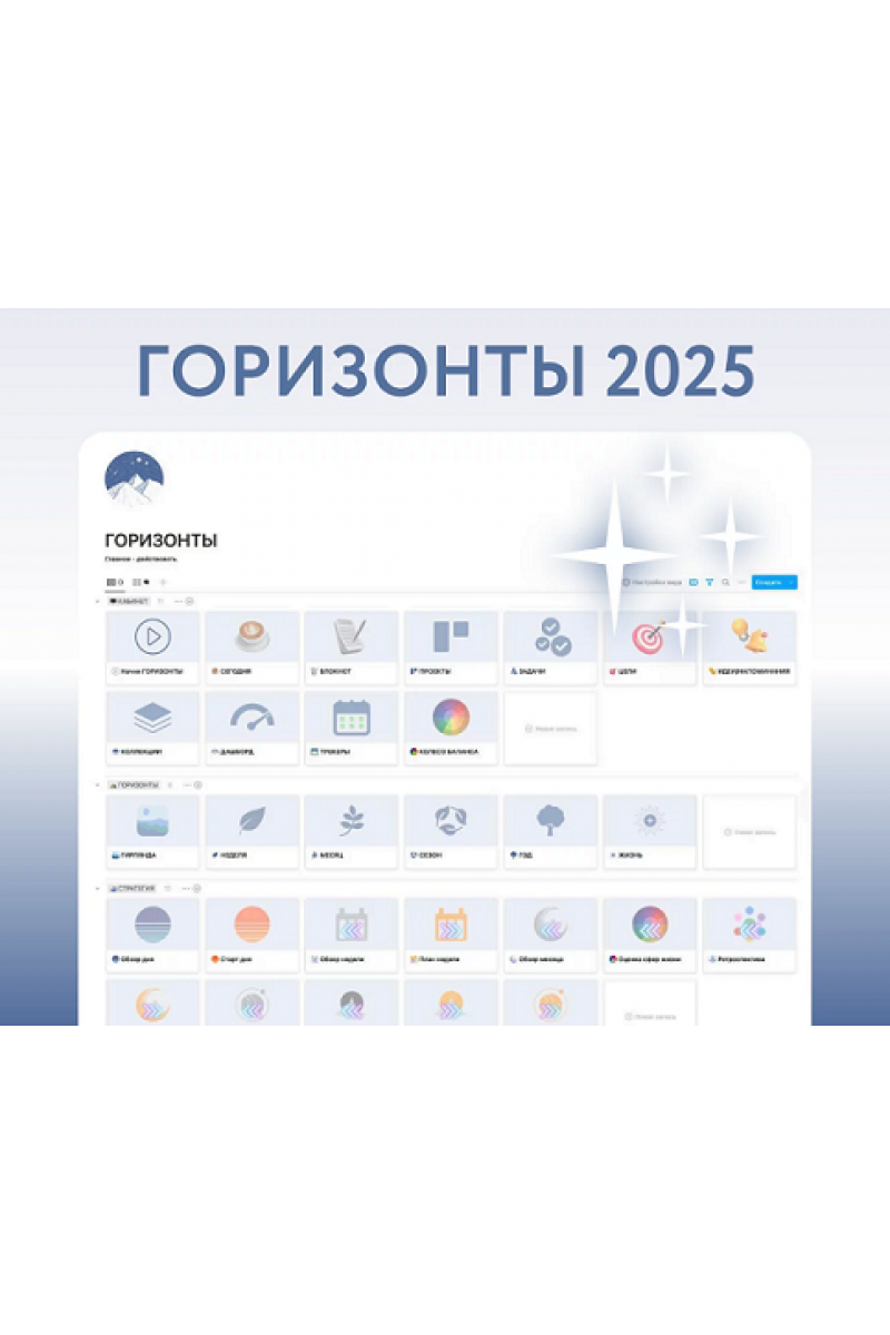 Горизонты позволяют создать целостную картину для глубокой рефлексии и эффективного планирования на всех временных отрезках. Горизонты - это дом вашей стратегии.