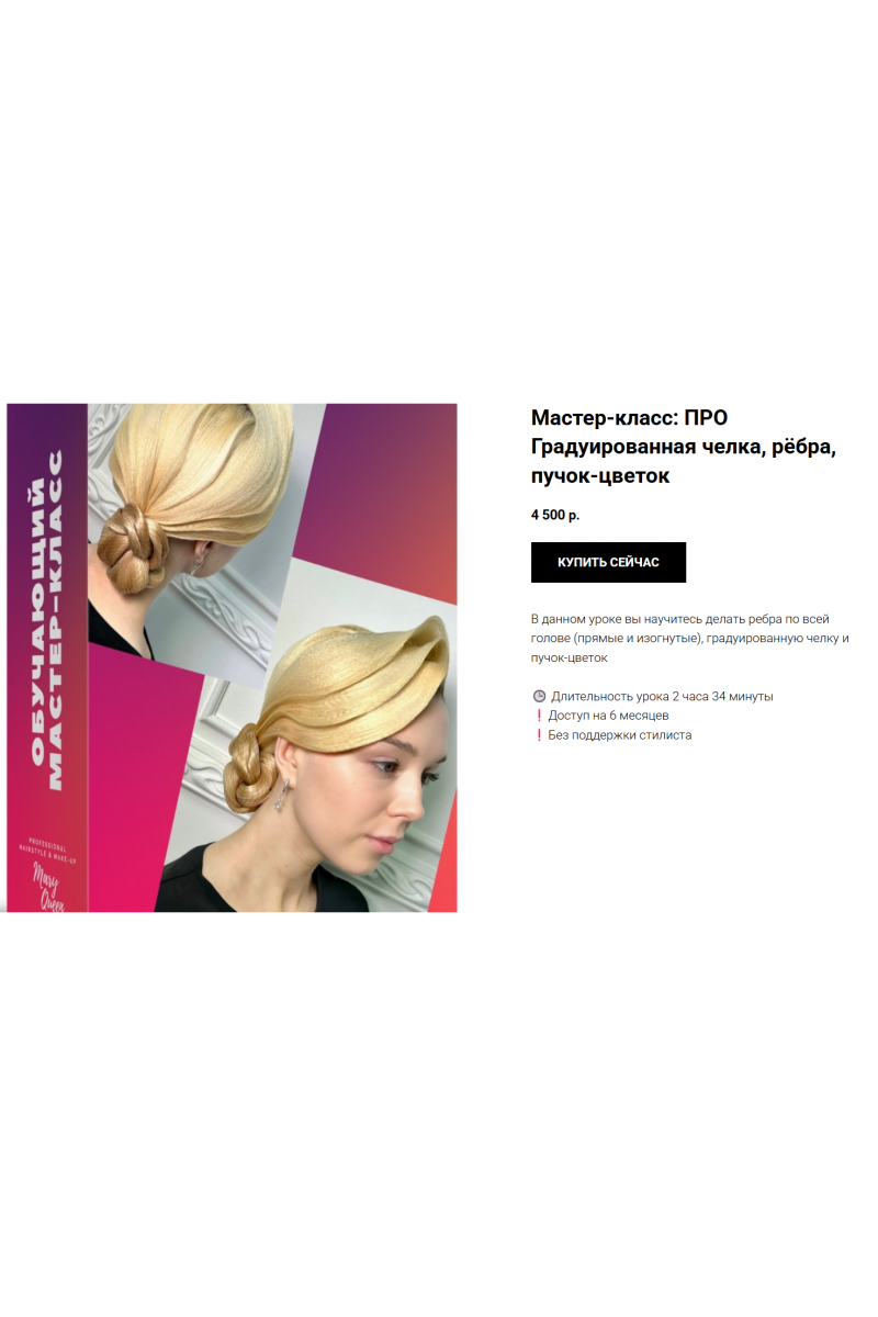 Мастер-класс предназначен для мастеров, которые хотят выйти на новый уровень и предлагать клиентам прически категории VIP. Этот образ неизменно привлекает внимание судей и зрителей благодаря своей невероятной детализации.