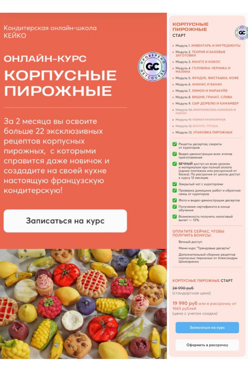 За 2 месяца вы освоите больше 22 эксклюзивных рецептов корпусных пирожных, с которыми справится даже новичок и создадите на своей кухне настоящую французскую кондитерскую!