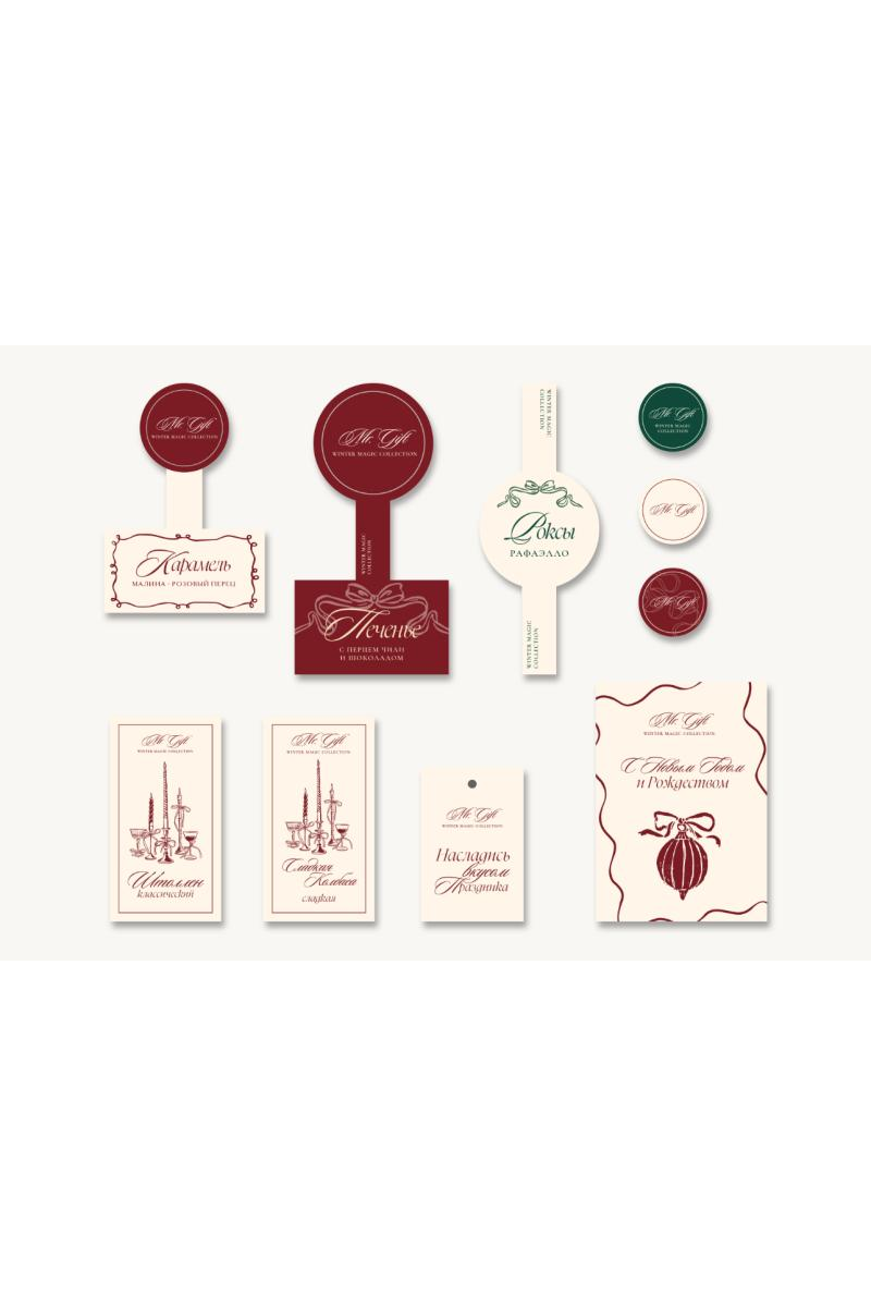 Наклейки на десерты курса «Рождественские встречи» - это финальный штрих, превращающий упаковку в стильное воплощение: свежести, тактильности, лаконичности и продуманного индивидуального подарка.