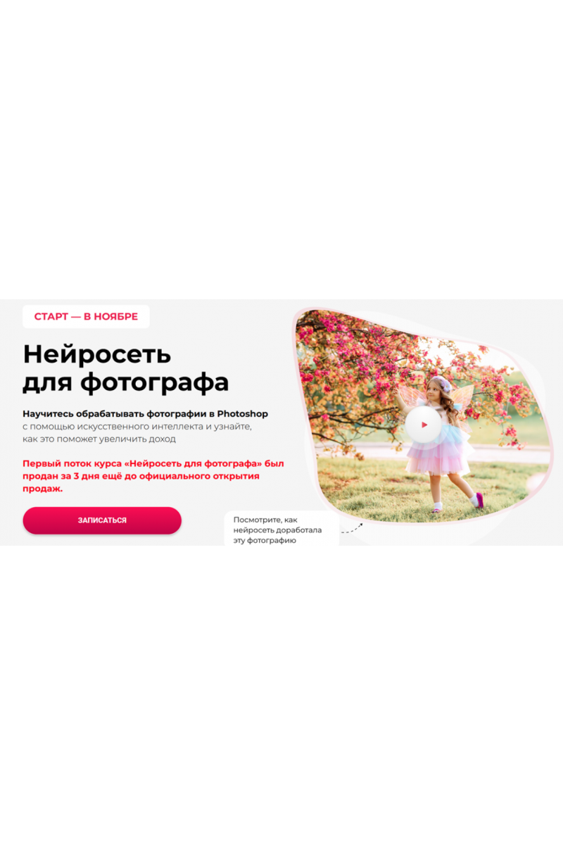 Первый поток курса «Нейросеть для фотографа» был продан за 3 дня ещё до официального открытия продаж.