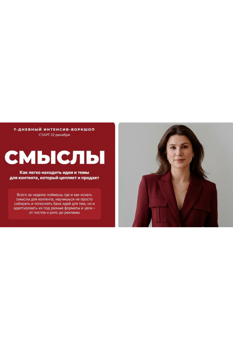 Всего за неделю поймёшь, где и как искать смыслы для контента, научишься не просто собирать и пополнять банк идей для тем, но и адаптировать их под разные форматы и цели — от постов и рилс до рекламы.