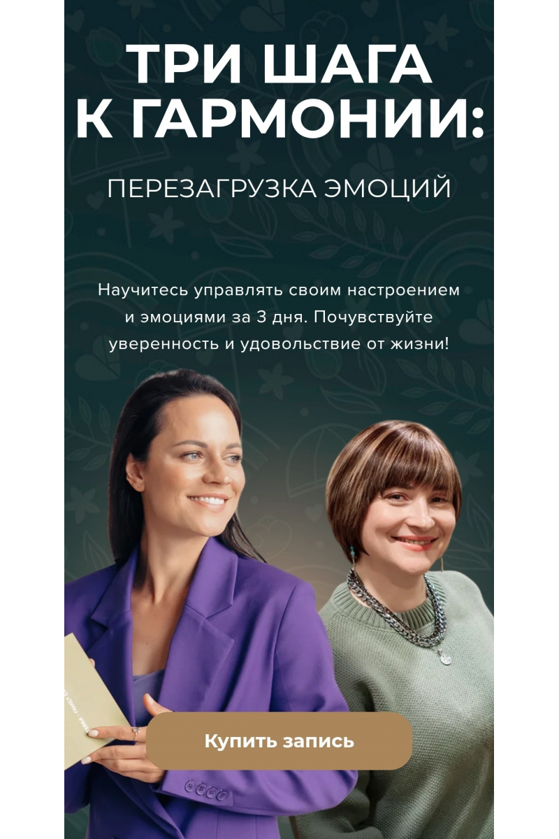 Поэтому практикум «Три шага к гармонии: эмоциональный перезапуск» — это ваш шанс взять на себя ответственность за своё эмоциональное состояние и сделать первые шаги к внутренней гармонии!