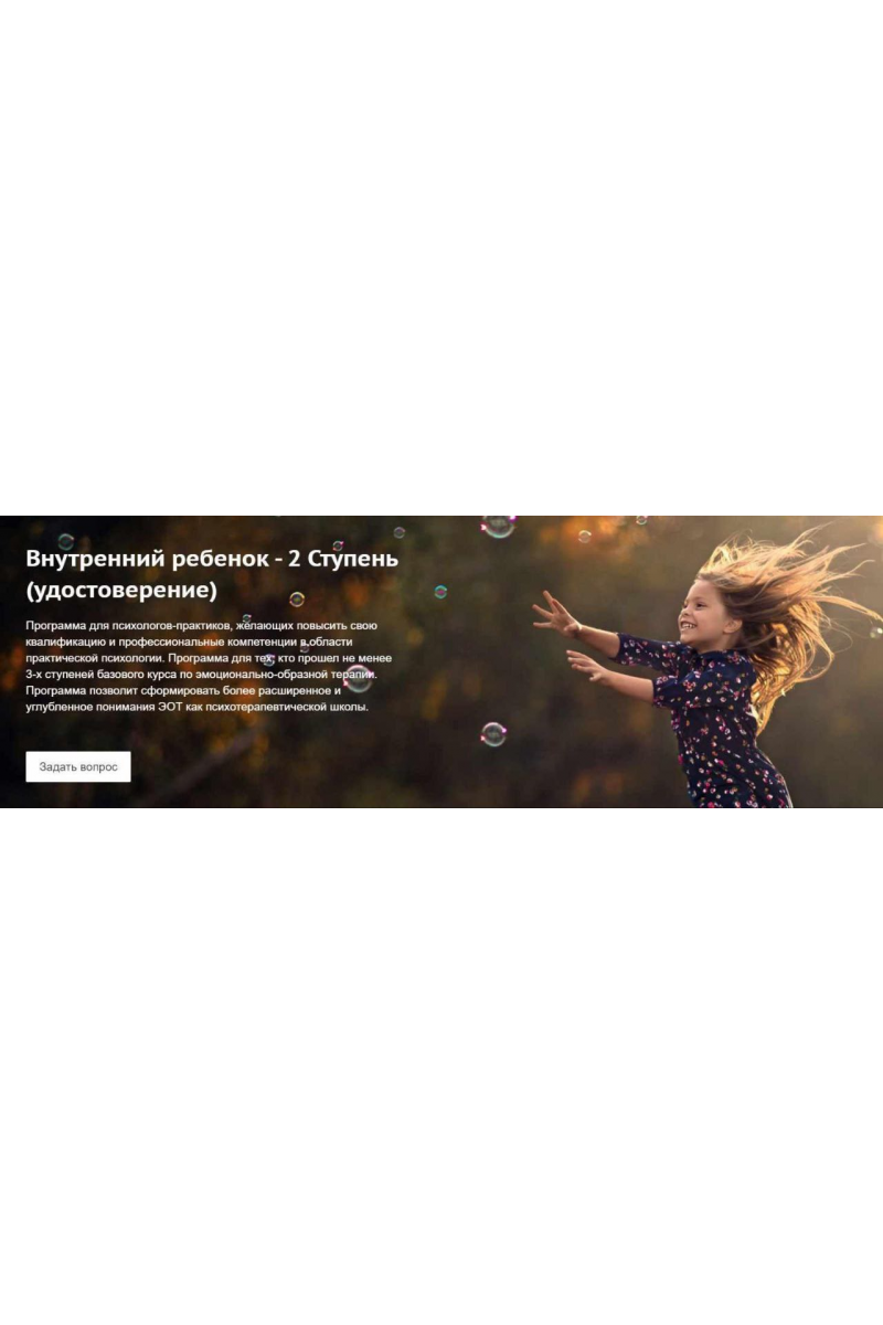 Программа «Травмированное Я в структуре Внутреннего Ребенка. Особенности и приемы работы в эмоционально-образной терапии» (2 Ступень) 2025 год.