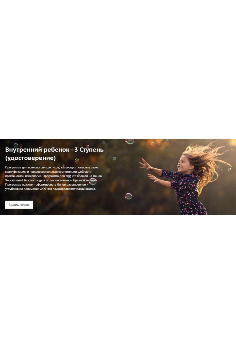 Программа "Психологические модели Саботажного Я в структуре Внутреннего Ребенка. Психологические модели Внутреннего Спасателя. Особенности, приемы работы в эмоционально-образной терапии" (3 Ступень)